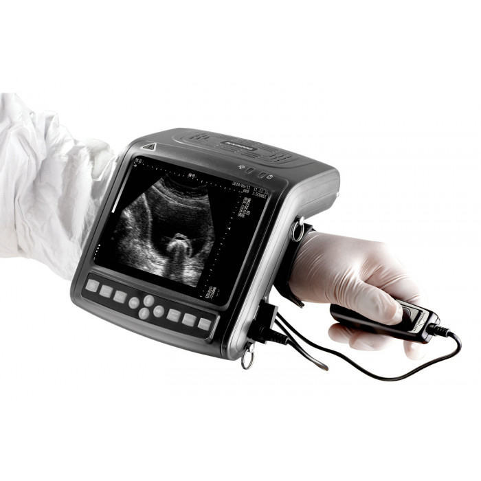 Зручна конструкція дозволяє закріпити його на руці. Ультразвуковий сканер дозволяє проводити діагностику корів, кіз, свиней, тощо.